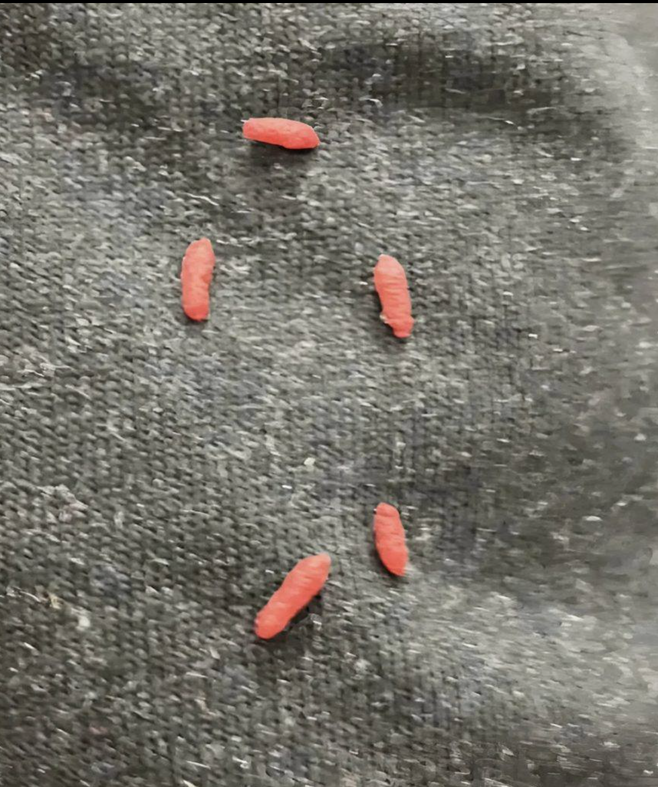 I took some sweaters out of the closet and noticed strange little red oval lumps on one of them. 😲 They felt unpleasant and smelled bad.🤔