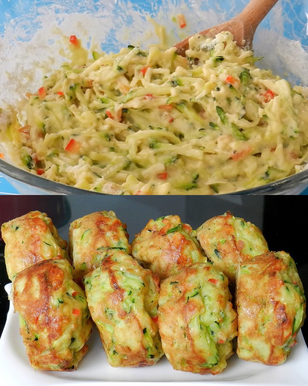 - Blend the Wet Ingredients: Grated zucchini eggs, finely chopped red bell pepper (if using), and grated cheese should all be combined in a large mixing dish. Until everything is distributed equally, thoroughly mix. Add salt, pepper, and any other ingredients you choose to taste.